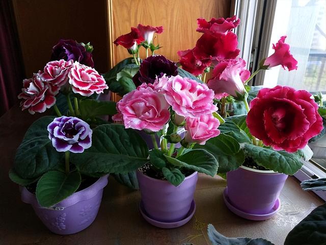2、大岩桐 多年生草本花卉,养护的好能四季开花,而养得好里有一条,就是别去乱晒太阳,特别是长时间晒太阳,对大岩桐的影响很大。 大岩桐越来越受欢迎,主要是它能开出油画般硕大的花朵,更是还有重瓣的造型,显得雍容华贵,丝毫不逊于月季和牡丹花。是装饰室内的理想花卉。 养殖大岩桐,最佳的地方就是靠近阳台、窗台的室内,也可以养在北侧阳台上,这样就不会触碰到强直光了。