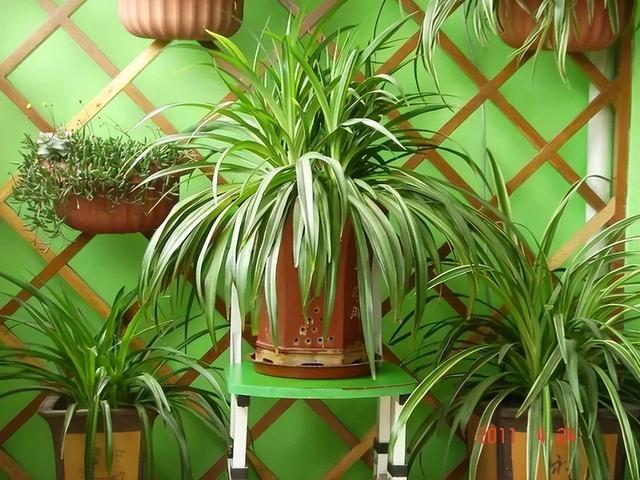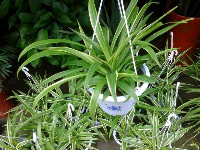 4、吊兰 吊兰和绿萝的习性很像,都是耐阴花,生长只需要散射光即可,强直光,短时间晒晒没什么影响,但时间一长,或者是阳光太过暴烈,直接卷曲枯萎。 不要想着拿出去晒晒是不是生长的更好,吊兰是反其道的,在室内能生长的盆满钵满的,盆土不好,无所谓;养分不足,不在乎;温度不佳,耐得住;可就是耐不住暴晒,记好了。 随着温度越来越高,如果家里的吊兰还在室外或者是阳台上晒太阳,记得可以收到室内了,晒太阳完全没必要,就是多此一举。