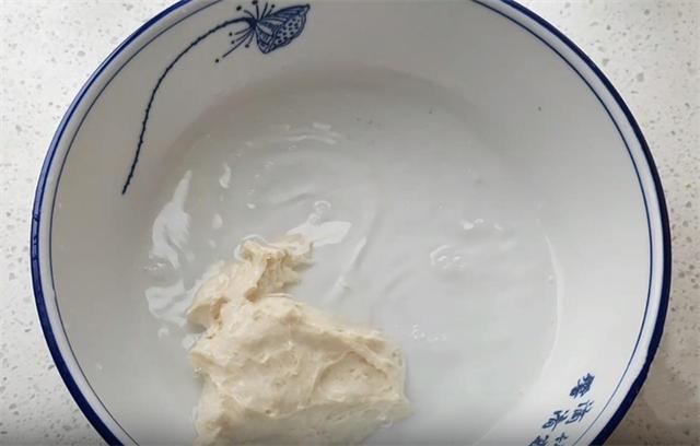 1.今天和大家分享一个纯碱老面馒头的做法,不用酵母,不用泡打粉,做出的馒头暄软有嚼劲。首先我们准备老面50克,老面就是我们上次做馒头的时候留出的一块面,放入冰箱冷藏保存3到5天,做馒头的时候直接拿出来用温水化开就可以,加入170毫升的温水,水温40度左右,把老面化开。