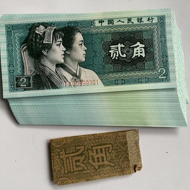 它们共同的特征是把纸币倒过来看,也是正常的数字,由这五个数字组成的号码就是倒置号,它们从去年开始流行受到众多藏友的追捧,在常见的2角纸币中,倒置号也表现出色,整刀的2角市价是在400左右,但倒置号的一刀就要800多了。