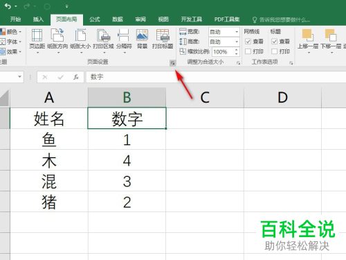 2. 想要居中的话,则点击上方的“页面布局”选项,在打开的页面布局选项中,找到“页面设置”组,点击其左下角的展开图标。