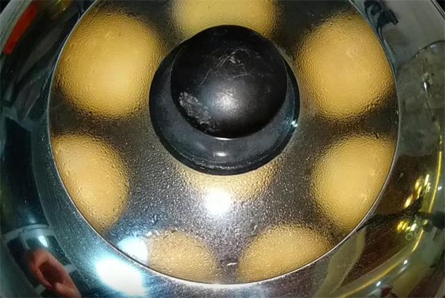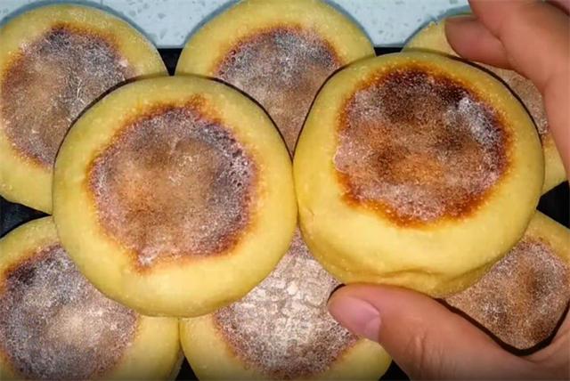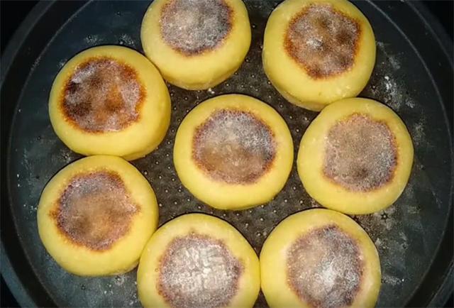 7.开盖之后我们翻面,然后再盖上盖子焖1到2分钟,小火反复翻面,直至烙至用手按按压快速回弹即可出锅。