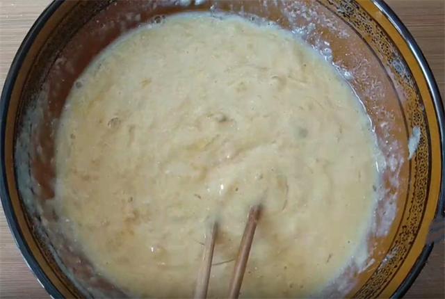 2.倒入200毫升的温牛奶搅拌均匀,再加入三克酵母搅拌均匀备用,这个红薯泥的温度一定不要太高,这样容易把酵母烫死。