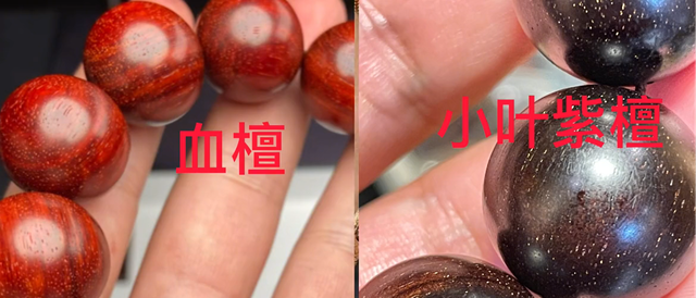 新料开出的小叶紫檀它闻起来是有一股淡淡的木头的清香味,而新料开出的血檀则是一股酸腐的味道,但是一旦时间长了放久了,经过长时间的陈放,它的味道就会慢慢的消散,就很难从味道上来分辨了,后期经过把玩之后血檀的油性和光泽也是不如小叶紫檀的。