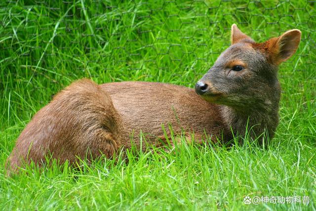 8、黑麂 黑麂,又称亚洲黑色獐,是中国特有的一种小型有蹄类动物,属于鹿科。它的体长约为1.0-1.3米,肩高约50-60厘米,体重在10-20公斤左右。黑麂在外形上和其他獐科动物有很大不同,它的身体呈现深棕色或黑色,四肢与颈部呈白色,且雌雄同形。黑麂主要分布在中国南方的云南、贵州、广西等地的山区,以及越南和老挝等周边国家。它们生活在海拔1500-3800米的森林中,喜欢在树林里觅食,以草本植物、树芽和树皮为主食。由于其数量逐渐减少,在中国境内被列为国家二级保护动物。 9、草原鹿 草原鹿又称巴拉圭草原鹿或南美小羚羊,是一种小型有蹄类动物,属于鹿科。它的体长约为1.0-1.3米,肩高约70-80厘米,体重在18-25公斤左右。该物种的毛色主要为棕色,喉部和下颌具有白色斑块。巴拉圭草原鹿主要分布在南美洲的巴西、阿根廷、乌拉圭、玻利维亚和巴拉圭等国家的草原地区。它们生活在广阔的开阔地和灌丛中,以草本植物和低矮的灌木为食。巴拉圭草原鹿性情温顺,通常成群结队活动,但也会单独行动。
