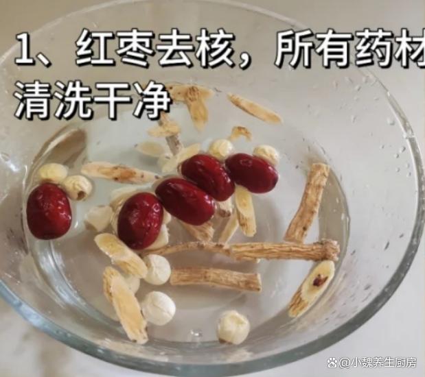 3:将猪心表面清洗干净,从中间切开,改刀切成若干片状,用料酒和生姜水浸泡,逼出里面的血水,锅中加面粉水浸泡洗净,控干水分即可。4:瘦肉去掉肥肉,洗净后切成瘦肉片,几个红枣去核洗净,准备好其他食材,开始制作这道党参黄芪莲子瘦肉猪心汤吧。 5:提前准备好煲汤的器皿,放入焯水好的猪心和瘦肉(如果用料酒浸泡,可以省略这一步),放入党参,黄芪,红枣,姜片,莲子等食材,加上1000毫升冷水,清水没过全部食材,调到大火炖煮。6:转至小火煲一个小时左右,让全部食材营养煮出来,食材煮至熟透,也可以放入一些枸杞子,加上少许白胡椒粉和食盐,用勺子把汤品搅拌均匀即可,出锅食用。 党参黄芪莲子瘦肉猪心汤是一款补血养生的汤品,深受南方人的喜爱,里面选用新鲜猪心,瘦肉(或者排骨),红枣,党参,莲子和黄芪等炖煮而成,食疗价值特别出色,补血安神,健脾和胃,促进营养的消化,别不懂吃。 网友们,你们有没有学会这款党参黄芪莲子瘦肉猪心汤的烹饪技巧呢?(文中的配图全部出自网络)