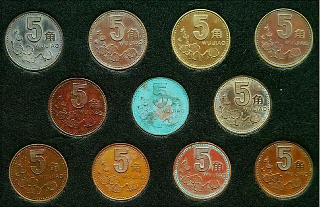 根据氧化后,币面颜色的不同,梅花5角可以分为红梅、绿梅和黑梅等等。 这种五颜六色的梅花5角,拥有更高的收藏价值,也受到了不少藏友的喜爱。你也可以对照看看。