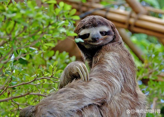 树懒 5.树懒:树懒的外观特征包括身体笨重、肢体粗短、指爪弯曲,皮毛又长又柔软,通常为浅灰色或黄褐色。它们的头部圆形,鼻子扁平且口吻短小,眼睛小而圆。由于其行动缓慢,它们的毛发上经常有寄生虫和藻类的生长。树懒的脸部轮廓与人类相似,尤其是它们的眼睛和鼻子。