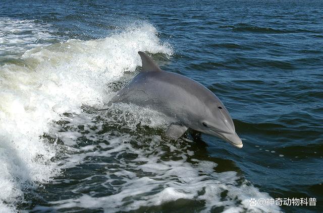 海豚 4.海豚:海豚的外观特征包括身体流线型、头部圆形、眼睛小而圆、嘴巴呈喙状,具有锐利的牙齿。它们的背鳍高大且位于身体中部,尾巴末端呈三角形。海豚的皮肤通常为光滑而柔软的表皮,颜色多样,有的为深灰色、黑色或蓝灰色,还有一些品种则有白色斑点和条纹。海豚的面部特征与人类相似,尤其是它们的嘴巴和下颚。