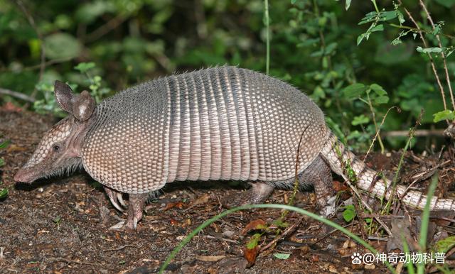 犰狳 7.犰狳:犰狳的身体特征主要包括身体呈锥形、四肢短小、腹部柔软且能卷曲成球状。它们的头部与身体相连较短,眼睛小而圆,嘴巴长而窄。犰狳有非常硬的鳞片覆盖全身,在面对威胁时会卷成一个坚不可摧的球来保护自身。犰狳的食性主要以昆虫和其他小型无脊椎动物为主。犰狳的面部特征与人类相似,有人说它们看起来像是穿着盔甲的小人。