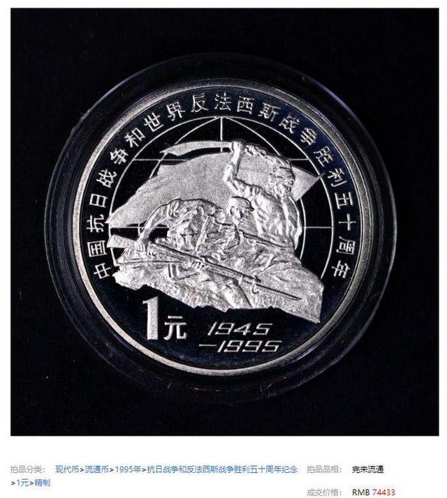 有一枚看上去平平无奇的1995年的一元硬币,拍出了74433,它为何会如此珍贵,谁又会有呢?一起来了解一下,今天要跟大家分享的一元硬币,并不是大家耳熟能详的牡丹一元硬币,而是95年发行的抗战50周年纪念币,它发行了1000万枚能等值流通。