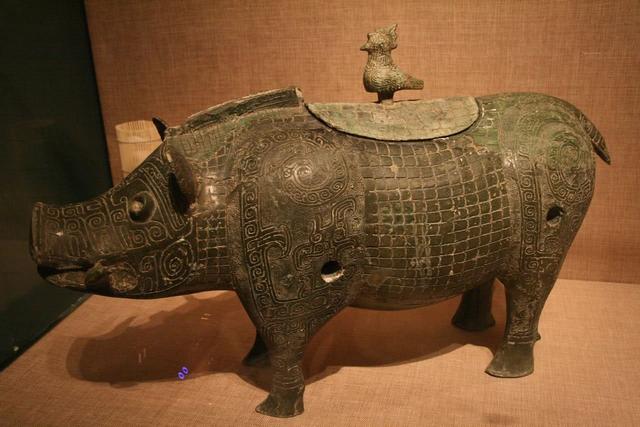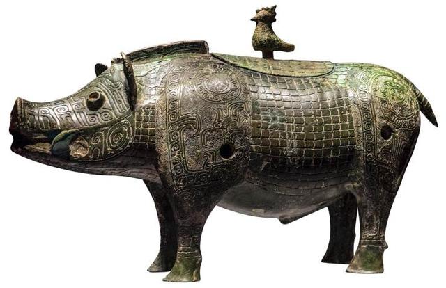 这头“猪”是商代的青铜器,它古代的全称为豕尊,豕就是猪的意思,到了现代也可以成为猪尊。这头“猪”目视前方,还长着獠牙,它的形态非常像现代没毛的野猪。这头“猪”的内部是空心的,在其身上,还有许多小孔。专家推断,这是一种大型祭祀活动上装酒的容器。这种祭祀活动有的是祭祀自己的祖宗,有的是祭祀神明。