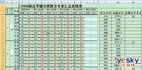 用Excel表格做了学生考试成绩汇总表,格式如图1所示。需要根据AA列中相应科目的成绩排出名次,并将结果放到AB列相应的单元格中。