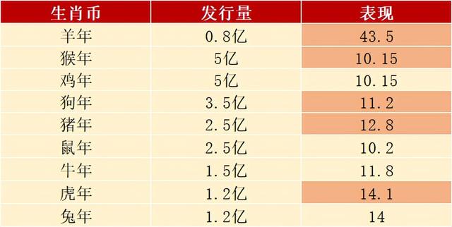 到兔年纪念币为止,我国已经发行了9枚二轮生肖币。 在兔币结束兑换之后,生肖币表现却出现了逆风上扬,中睿百科也整理了它们最新的表现。