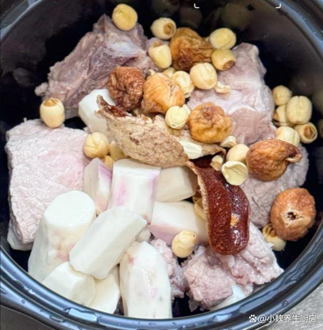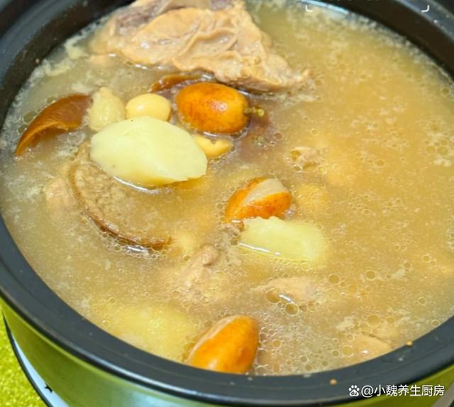 第六步:炖锅里放入猪骨,加上黄皮果,无花果,陈皮,山药块和其他食材,加上足量的清水,一次性要多加一些水,不要中途煮干了。 第七步:等待汤汁慢慢变黄,里面食材营养都煮出来,猪骨煮到软烂,调入少许食盐,加上一小勺胡椒粉即可,焖煮一小会儿,这道黄皮果山药莲子猪骨汤就烹饪完成了,夏季一定莫要错过它。 黄皮果山药莲子猪骨汤是一款夏季养生汤,尤其是广东人爱喝,里面添加黄皮果,莲子,猪骨和山药,都是补益身体的食材,汤品鲜美好喝,润肺去火,养心安神,提升我们的抵抗力。网友们,你们有没有掌握这款黄皮果山药莲子猪骨汤的制作技巧呢?(文中的配图全部出自网络)