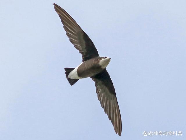 6、白喉针尾雨燕 白喉针尾雨燕(White-throated Needletail)是一种分布广泛的大型雨燕,生活在亚洲、澳大利亚和欧洲。这种鸟类以其极快的飞行速度而闻名,据报道它们可以飞行每小时达到170公里(105英里/小时)以上的速度,这使得白喉针尾雨燕成为世界上最快的鸟类之一。它们的飞行速度非常惊人,能够在空中轻松地追赶飞行昆虫或其他小型鸟类。
