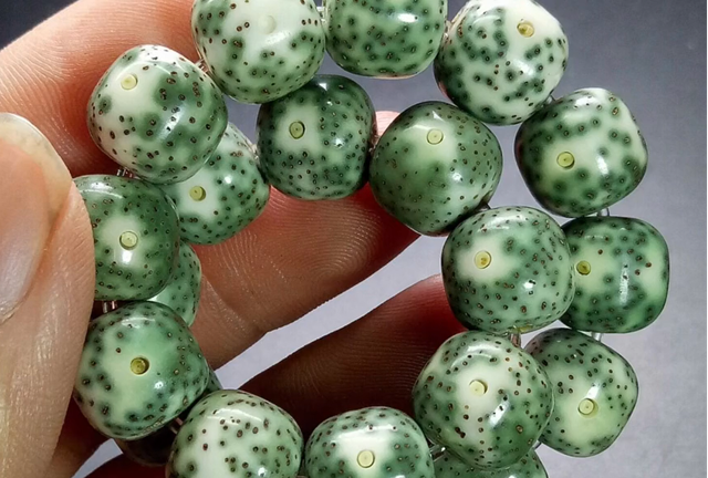 当时也应该是从佛珠的角度考虑的,这样的话更适合长期的盘捻,同时有修身养性的理念在里面,那个时候的玩家都知道你买一条星月,都是以年为单位来划分盘玩阶段的,比如说你这个玩了一年,他那个玩了两年,据说后期还有一种说法说,脱脂星月是为了让它的星点更细,那就是又到后期为了追求珠子的星稀月朗这个工艺,又提出了新的要求。