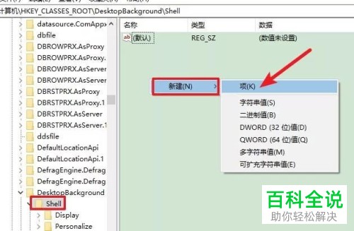 6. 第六步鼠标右键单击【关机】文件夹,在弹出的菜单栏中根据下图所示,依次点击【新建-项】。