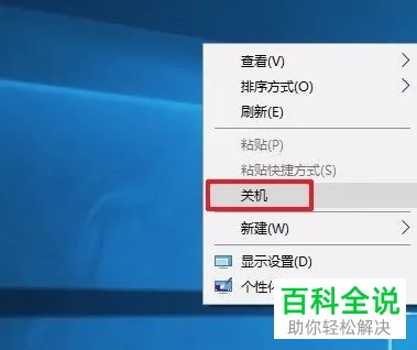 9. 第九步退回电脑桌面,鼠标右键单击空白处,根据下图所示,成功添加【关机】菜单。