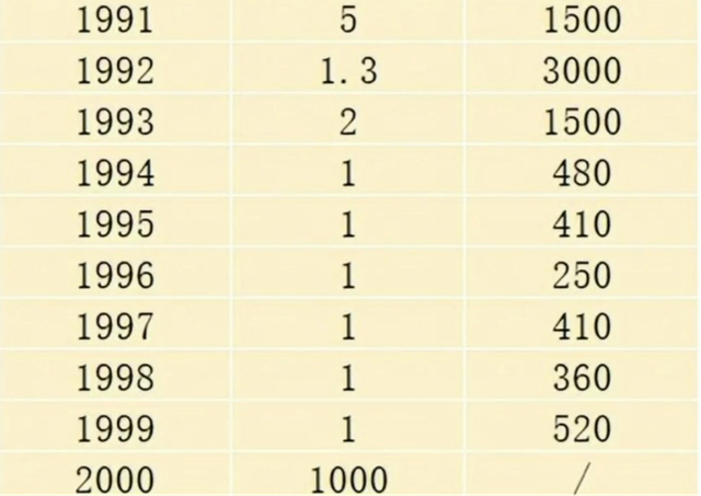 但是它的市场表现却远远比不上,梅花五角以及菊花一角,91到99年这9个年份中最贵的是91年,好品相大概在5一枚,其它的仅仅比面值高一些,然而这仅仅是91到99年份,我国还发行过2000年的牡丹一元,它的市价达到了1000左右,图片中反映的是1991年到2000年牡丹一元各个年份的市价。