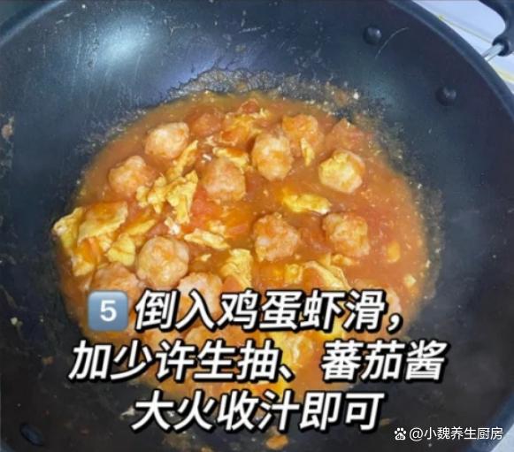 正确制作顺序: 第一步:提前准备好大虾,鸡蛋,胡萝卜和番茄等食材,先把土鸡蛋打在容器里,加上少许水淀粉,加上半勺料酒,调入一些食盐调味,搅拌均匀即可。第二步:把大虾的虾线挑出来,虾壳和虾头都去掉,虾肉彻底清洗干净,剁碎成细末,放在碗中备用。第三步:胡萝卜洗净后去皮,切成一些细末,胡萝卜也放在碗中,将虾肉和胡萝卜充分搅拌均匀,加上半勺料酒和生抽,加上少许淀粉,加上一丢丢食盐,将虾肉腌制入味。第四步:番茄用热水烫一烫,去掉外皮切成小丁,香葱切成若干小葱花,姜蒜切成细末,备用。 第五步:锅中加上适量冷水,将虾肉挤成肉丸子,水开下锅煮两分钟,捞出控干水分,准备好其他食材,开始烹饪这道番茄虾滑抱蛋吧。 第六步:锅底调入少许食用油,滑入鸡蛋液煎一会儿,放入煮熟的虾滑,鸡蛋煎至成型,盛出备用。 第七步:锅中继续加上食用油,放入葱花和姜蒜末,倒入番茄丁炒出汁水,加上少许清水,焖煮一小会儿。 第八步:滑入鸡蛋和虾滑,淋入少许水淀粉,加上少许生抽和蚝油,加上食盐和鸡精,加上半勺胡椒粉,用锅铲翻炒均匀。第九步:撒上葱花点缀,收汁出锅,这道番茄虾滑抱蛋就可以食用了,赶快给家里人做一做。 番茄虾滑抱蛋是非常美味的家常美食,选用番茄,鸡蛋,大虾,胡萝卜等食材制作而成,菜色非常诱人,汤汁特别浓郁,鸡蛋非常鲜嫩,吃起来特别解馋,促进营养的吸收,越吃越过瘾。 网友们,你们有没有吃过这道番茄虾滑抱蛋呢?(文中的配图都出自网络)