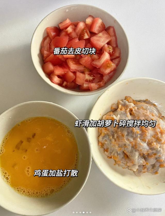 一转眼的时间,七月就悄悄离我们而来,7月6日迎来24节气之一——小暑节气,是夏季非常关键的节气之一,标志着暑热时期的来临,三伏天也在向我们招手,一年里最炎热的时候来临了。天气越来越热,人体会出汗特别多,能量消耗非常大,我们需要按时吃饭,多摄入一些营养和水分,保证身体的健康。说到夏季,可以少吃大鱼大肉,也要多吃新鲜蔬果,比如说黄瓜,番茄和茄子,今天准备用番茄,大虾和鸡蛋等食材,制作一道家常美食——番茄虾滑抱蛋,菜色特别诱人,鲜嫩美味,让营养更容易被吸收,轻松应对三伏天的到来,一起来看看吧。7月,番茄和它是绝配,简单省事,营养易消化,补足营养平安入伏。  【番茄虾滑抱蛋的正确做法】 准备一些食材:选购土鸡蛋2-3个(鸡蛋是最便宜的高蛋白食材,色泽好看,鲜嫩美味,烹饪方法非常多样性,吃起来特别美味),食用油少许,半根新鲜胡萝卜,半勺料酒,少许食盐,半勺生抽和蚝油,胡椒粉半勺,若干根新鲜小葱,冷水少许,番茄酱半勺,新鲜番茄一个(番茄是一种夏季很受欢迎的果蔬,汁水非常充足,吃起来酸甜可口,年轻人要多吃它),水淀粉少许,食盐和鸡精少许,胡椒粉半勺,选购新鲜大虾250克(新鲜大虾是做成虾滑的首选,虾肉的肉质鲜嫩,营养价值很高,平常要多吃它),其他。