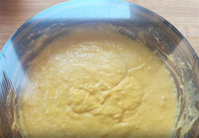 4.电饼铛开小火,刷少许的油,油温微热挤入面糊,这个小饼不需要盖盖子,盖盖子的话会影响它的起发口感,就不松软了。烙至底面金黄,我们翻面,翻面的时候要稍微轻一点,烙至另一面金黄,我们再次翻面,反复翻面,直至两面金黄松软即可出锅。
