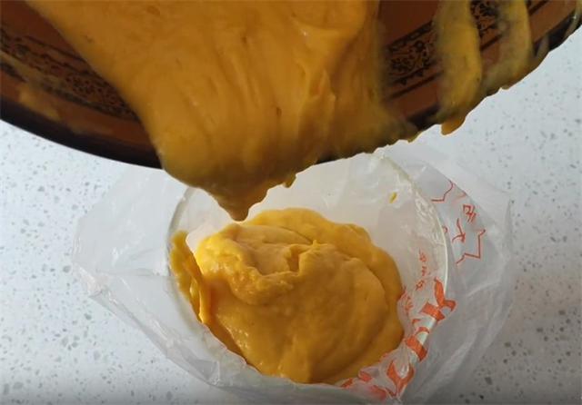 3.也可以提前一晚把面糊调出来,放冰箱冷藏发酵一晚,这样早上起来十分钟就可以做好,发好的面搅拌,排出大气泡,倒入裱花袋内,这样更容易操作。
