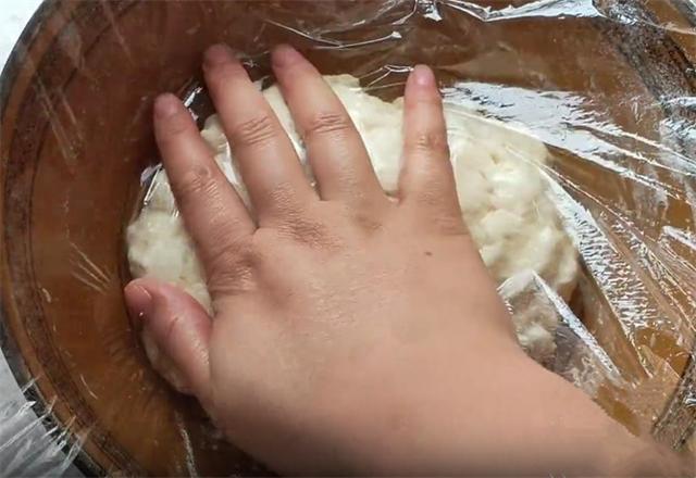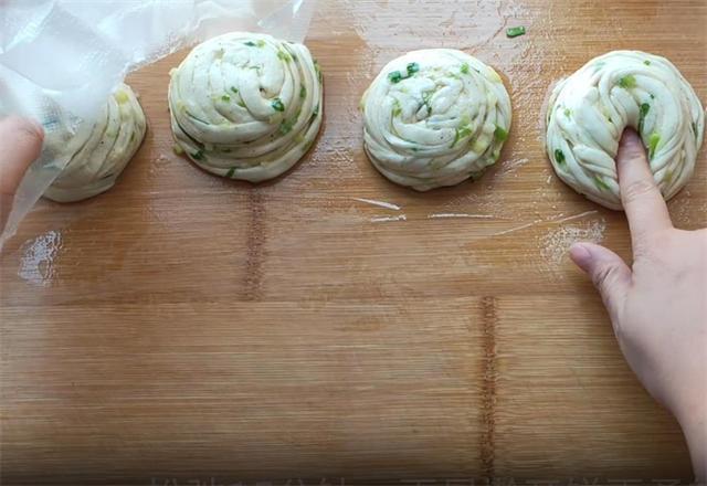 6.这样做出的饼层次特别的丰富,做好以后我们盖上保鲜膜松弛15分钟,这样更容易擀开,而且做出的口感更加柔软。