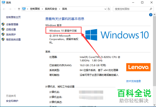 3. 最后在【系统】窗口中,根据下图箭头所指,即可查看Windows版本。