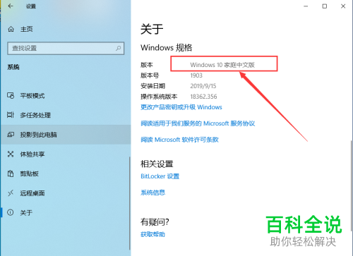 4. 最后在右侧页面中,根据下图箭头所指,即可查看Windows版本。