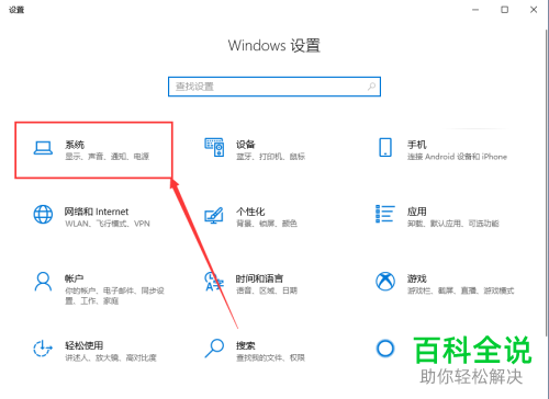 2. 第二步打开【设置】窗口后,根据下图箭头所指,点击【系统】选项。