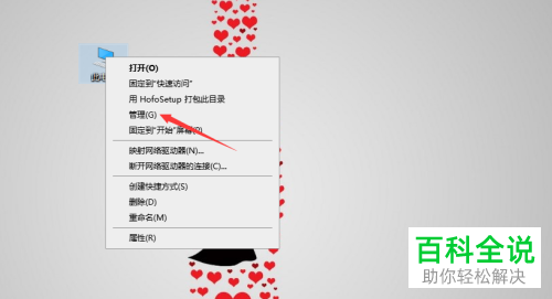 2. 第二步鼠标右键单击桌面【此电脑】图标,在弹出的菜单栏中根据下图箭头所指,点击【管理】选项。