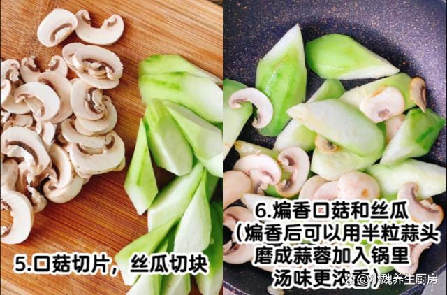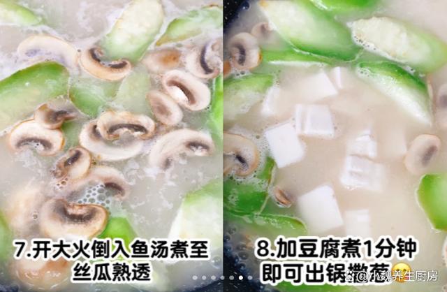 盛夏七月,时间过得超级快,正值夏天最炎热的时候,马上要经历小暑,大暑和三伏天等节气,明日就要迎来小暑节气,小暑节气是夏季非常重要的阶段,天气非常闷热,新陈代谢加快,身体里的水分流失快,我们要多注意作息,平常多吃水果和蔬菜,建议多喝各种汤汤水水。盛夏来临以后,晚餐建议在家吃,我们家一般是四菜一汤,今天准备用丝瓜,豆腐,鲫鱼和口蘑制作一款家常汤品——丝瓜鲫鱼蘑菇豆腐汤,汤品特别鲜美,老少皆宜,赶紧学起来。小暑节气,有钱没钱,多给家人喝这汤,补足营养,三伏天过得安稳。  【丝瓜鲫鱼蘑菇豆腐汤的制作技巧】 准备一些食材:选购新鲜丝瓜150克左右(丝瓜又叫水瓜,是一种夏季最受欢迎的蔬菜,含有丰富的维生素C和蛋白质,丝瓜特别清甜解腻,一般搭配肉类和蘑菇一起吃,丝瓜可以用来煮丝瓜汤,喝起来特别鲜美),少许食用油,若干个大蒜头,几片生姜,香葱若干根,一条鲜活鲫鱼,少许食盐,鸡精和胡椒粉少许,新鲜口蘑8个左右(口蘑是蘑菇的品种之一,色泽洁白,口感鲜嫩美味,是用来煮汤的佳品,让汤品鲜美倍增),豆腐120克左右,冷水和开水少许,少许料酒,食盐少许,其他调味品。 详细制作顺序: 步骤1:提前选购好丝瓜,鲫鱼,口蘑和豆腐等食材,先把生姜去皮切成细末,大蒜切碎成细末,香葱洗净后切成葱花,备用。步骤2:豆腐用冷水漂一漂,捞出切成大小的块状,鲫鱼提前宰杀好,去掉鱼鳃和内脏,去掉黑膜,鱼身用料酒涂抹,加上少许食盐,将鲫鱼腌制半刻钟。步骤3:将丝瓜都削皮,切掉头尾洗干净,斜切成滚刀块,丝瓜用盐水浸泡,这样煮出来的丝瓜汤色泽不会变黑,控干水分即可。步骤4:将口蘑的根部用剪刀去掉,用清水洗干净,也可以用盐水浸泡,切成若干片状,准备好其他食材,开始烹饪这道丝瓜鲫鱼蘑菇豆腐汤。 步骤5:锅底提前烧热乎,加上食用油少许,放入腌制好的鲫鱼,两面都煎至金黄,放入一些姜片和料酒,加上适量开水煮沸,也可以将鲫鱼捣碎(只保留鲫鱼汤),盛出备用。 www.ws46.com 步骤6:锅底加上少许食用油,放入一些葱姜蒜,倒入口蘑和丝瓜炒至变软,倒入提前准备好的鱼汤。 步骤7:最后下入豆腐块,盖上汤锅继续焖煮,让汤汁煮至奶白色,调入半勺味极鲜提鲜,加上一丢丢胡椒粉和食盐,让汤品充分入味。步骤8:最后撒上葱花点缀即可,这款丝瓜鲫鱼蘑菇豆腐汤就制作完成了,喝起来特别鲜美。 丝瓜鲫鱼蘑菇豆腐汤是一款特别鲜美的汤品,富含大量蛋白质,钙质和微量元素,保留丝瓜的清甜和蘑菇的鲜美,豆腐也非常嫩滑,汤品有鲫鱼汤的鲜美,喝起来超级美味,为家里人提供许多能量,早食早受益。 小伙伴,你们是否掌握这款丝瓜鲫鱼蘑菇豆腐汤的做法呢?(文中的配图全部出自网络)