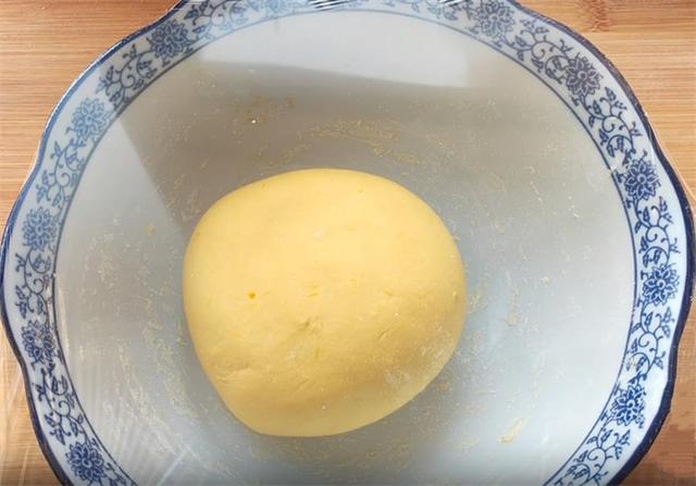 2.接下来我们再用南瓜泥和一个面团,南瓜150克蒸熟,按压成细腻的南瓜泥,温热的时候加入两克酵母,搅拌至酵母完全溶解。我们分次加入约200克左右的面粉,搅成面絮状,我们下手揉成稍硬一点的光滑面团,密封醒发至两倍大。