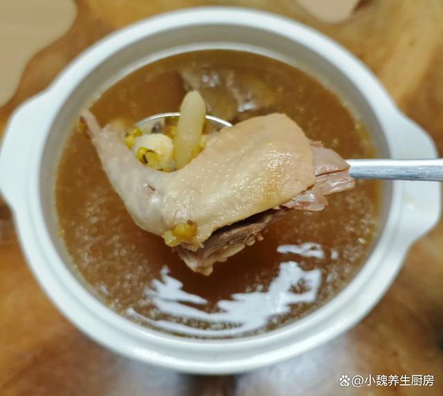 7:按下煲汤的键,大概炖煮一个半小时,最后调入少许食盐,加上一丢丢胡椒粉,用勺子搅拌均匀,让汤品充分入味,焖煮一会儿即可,出锅食用。 绿豆莲子百合炖鸽子汤是夏日必喝的汤品,经过简单的烹饪,绿豆搭配百合,莲子和鸽子炖一锅,汤色好看,鲜美极了,帮助消暑解热,调整身体内循环,让失眠远离你,早食早受益。 小伙伴们,你们掌握这款绿豆莲子百合炖鸽子汤的正确做法吗?(文中的配图全部出自网络)
