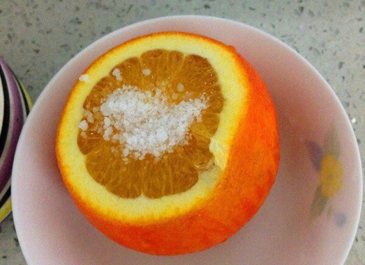 盐蒸橙子的做法主料:橙1个 调料:食盐1/3茶勺 做法: 1、彻底洗净橙子,可在盐水中浸泡一会儿 2、将橙子割去顶,就象橙盅那样的做法 3、将少许盐均匀撒在橙肉上,用筷子戳几下,便于盐份渗入 4、装在碗中,上锅蒸,水开后再蒸大约十分左右 5、取出后去皮,取果肉连同蒸出来的水一起吃 烹饪技巧: 1、橙皮一定要洗干净,用盐水浸泡可以起到一定消毒作用。 2、盐不要放太多,太多口感很差。