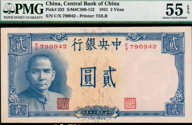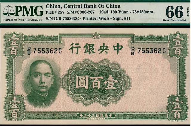 缘翡翠,民国33年中央银行委托英国华德路公司印制,钞票印好回国途中由于轮船沉没,造成了部分钞券损失,仅有少部分运回发行,因此成为法币中珍稀的大名誉品。
