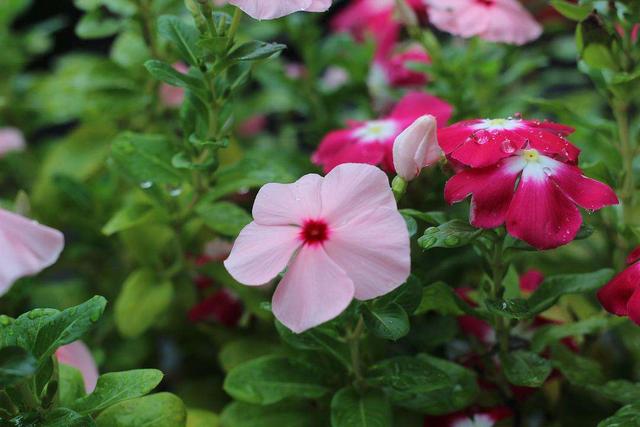 4、长春花 长春花养殖起来非常舒心,放在室外,它就能常开不断。它不仅耐晒耐旱,还非常好养活,在南方地区,甚至一年四季都能花开不绝。现在看到长春花,完全可以买几盆放在阳台上,来装饰你的阳台,相信你的阳台会更加的漂亮,因为它比较喜欢光照,在阳台上会生长得越加的旺盛。