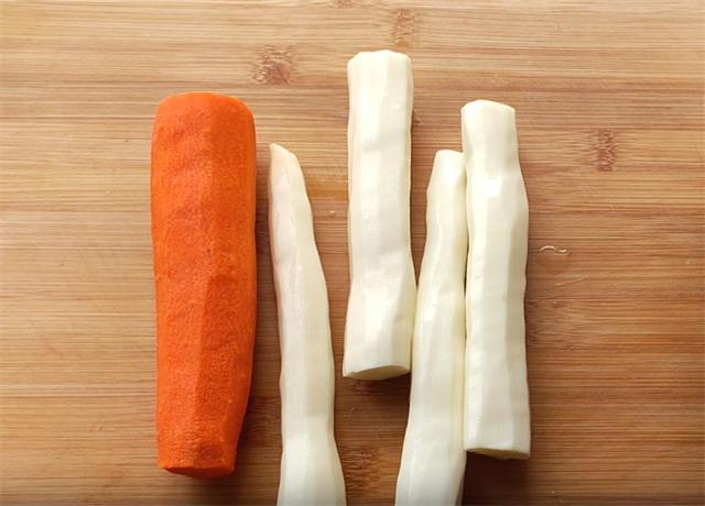 1.今天和大家分享一个用山药做的早餐,简单快速,营养又健康,几分钟就能搞定。首先我们准备一根山药,去皮洗净切成段备用,再准备一根胡萝卜去皮洗净备用。