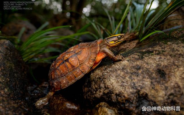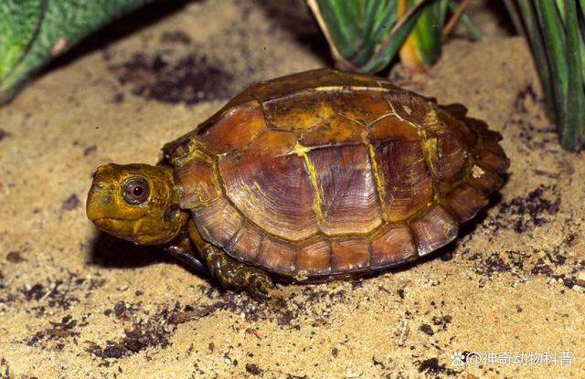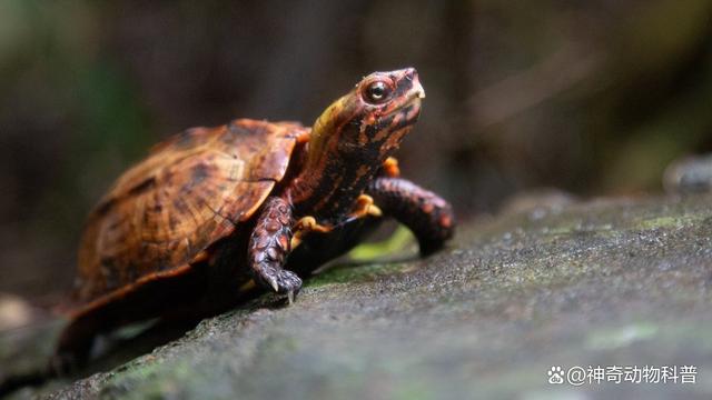 5、锯缘摄龟 锯缘摄龟,也被称为八角龟或八棱龟,是公认最偏向陆栖的半水栖龟类之一。它们分布于中国湖南、海南、云南和两广地区以及越南、缅甸和印度等国家。锯缘摄龟主要栖息于热带和亚热带地区的丘陵山区,生活于比较阴湿的环境中,通常离水源不会太远,并有定期饮水的习惯。 锯缘摄龟喜欢食用蜗牛、蠕虫、昆虫等食物,是完全在陆地上摄食的,与陆栖龟类更相似。因此,有观点认为将其划分为陆栖龟类更为恰当。