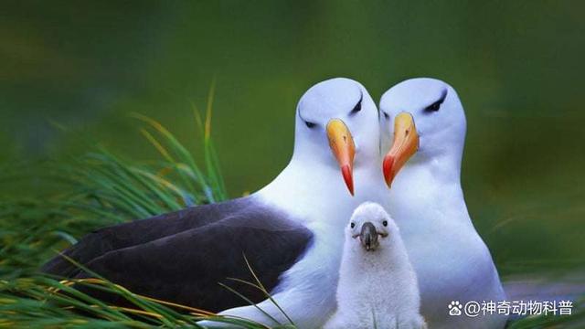 4、信天翁 信天翁是世界上最珍惜爱情的生物之一。尽管它们超过90%的时间都在海上漂泊,但它们仍然牢记家的位置,因为它们会每年十月底准确地回到那里。未婚的信天翁开始寻找伴侣,而已婚的信天翁则耐心地等待另一半的归来。一旦它们选择了一个伴侣,就会终身相伴。更神奇的是,即使分别数年,信天翁也能够记住对方的音容笑貌,并且在茫茫鸟群之中轻松辨认出自己的伴侣。