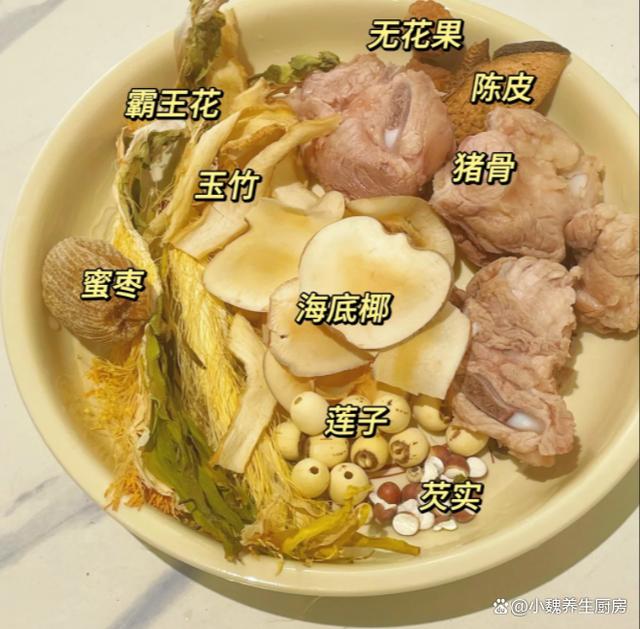 进入七月份,感觉到很强烈的炎热感觉,每年暑假都是难受的,因为处于三伏天期间,要经历长时间的考验,这个时候出汗特别多,很容易上火喝中暑,各项机能减退,抵抗力特别差。入伏前,天气都高于30摄氏度,高温不仅仅带走水分,还会让身体特别虚弱无力,嗓子干燥不舒服,要调整好作息,多吃应季的蔬果,建议要尝尝这款靓汤——霸王花海底椰陈皮猪骨汤,几种食材炖一锅,汤品巨鲜美,不懂吃就太可惜了。入伏前,无论多忙,建议要多喝这汤,润肺去燥,增强免疫力!  【霸王花海底椰陈皮猪骨汤的正确制作】 准备一些食材:选购优质霸王花两朵(霸王花是仙人掌科的花卉,晒干后可以入药,许多南方人拿来煲汤,对肺部健康和咳嗽有好处),选购450克新鲜猪骨(猪骨是特别便宜的肉类,骨头里富含大量的营养,煲汤能够让营养更快吸收),海底椰20克左右,陈皮一大块,若干个蜜枣,莲子30克左右,生姜15克左右,若干料酒,温水和冷水若干,一小勺胡椒粉,若干食盐,其他佐料。