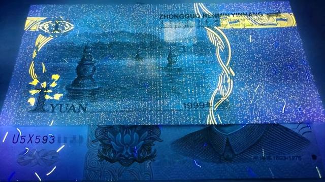 在人民币的收藏当中有这样一种说法,叫做三版玩水印,四版玩荧光,那么五版玩什么呢?五版目前主要的收藏方式就是号码币,所以说荧光在第四版里面,它是比较有明显的收藏特点的,但其实在第五套人民币里面,也有很多非常漂亮的荧光。
