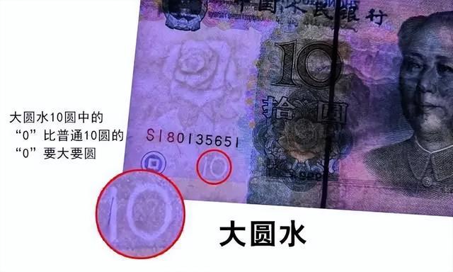 大圆水和小圆水的中间是没有横杠的,大圆水就是0它的高度比1还要高,所以叫做大圆水,小圆水就是0它的高度比1要低一点,就称之为小圆水,主要就是通过这种辨别方式,来区分5种水印的区别,大家如果有兴趣可以去多了解一下这5种水印,它们的市场溢价还是非常高的。#99版纸币# |