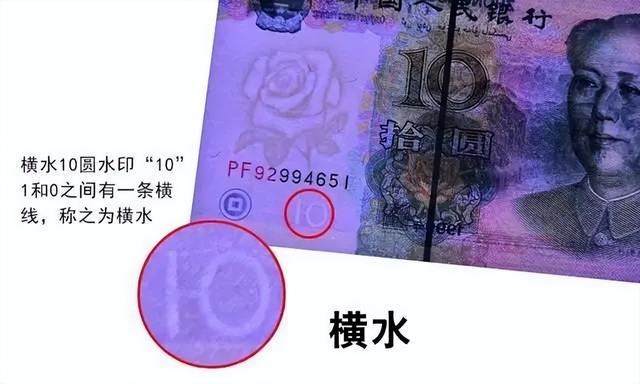 在1999年版中的10块钱,有一个比较知名的独立品种,叫做五水五红,什么是五水五红呢?它其实就是五种不同的白水印,白水印是人民币当中一种非常高的防伪技术,99版10块钱是白水印的试验币,通过不断的尝试才把白水印试验成功。