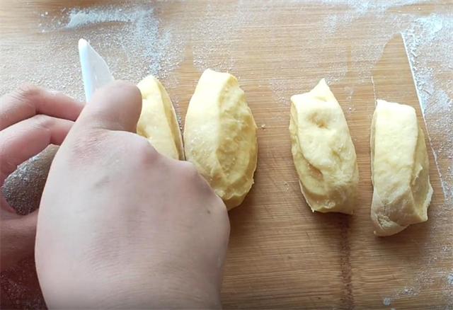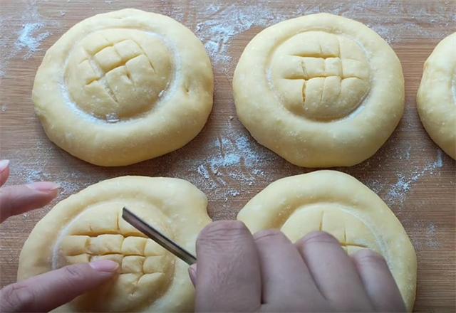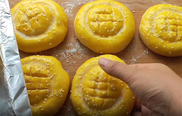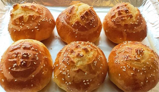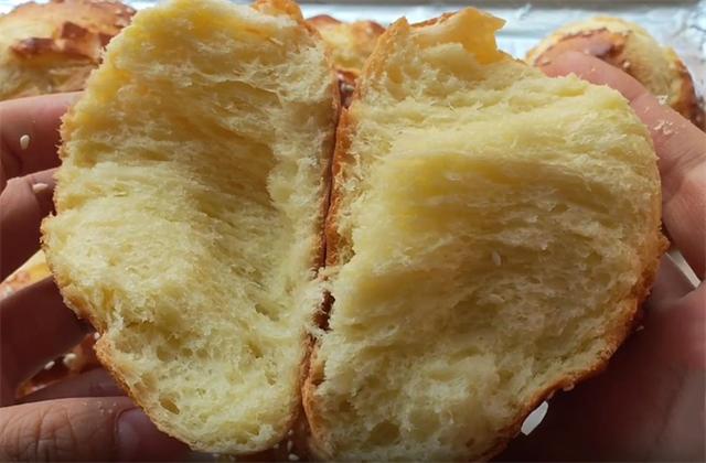 9.这样我们的烤饼就做好了,看上去就很有食欲,外皮金黄酥脆,内里松软香甜,里面的组织特别的细腻绵软,带有微微的拉丝状,真的是比面包还好吃。 |