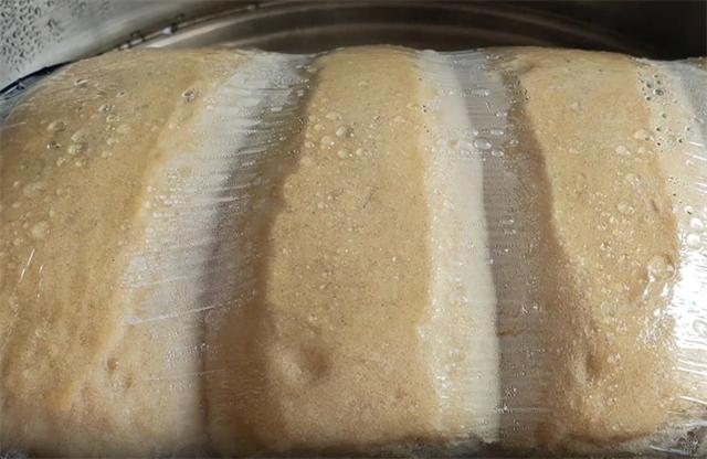 想要享受全麦面包的健康美味,却又担心揉面和烤箱的繁琐?今天,就让我为大家带来一款不用揉出膜、不用烤箱的全麦面包新做法,简单省力,松软拉丝,绝对是减肥人士的必备良伴! 准备食材: 全麦面粉、酵母粉、盐、白糖、温水、玉米油 具体做法: 1.今天和大家分享一个全麦面包的做法,我们不用烤箱,这样做出来的面包好吃不上火。我们准备全麦面粉300克,加入三克酵母,因为全麦面粉面筋含量稍微低一些,所以说我们加入两克盐增加筋性,再加入5克白糖促进发酵。温水210毫升,边倒边搅拌,我们在和这个面的时候一定要顺着一个方向用力搅拌,搅动起来非常吃力,像这种干湿程度才可以。 2.然后倒入20毫升的玉米油,用手把它拍平,用它来代替黄油,同时发酵的过程中,表面刷一层油,发出的面会更加柔软,然后盖上保鲜膜密封放冰箱冷藏发酵一晚,经过长时间的低温发酵,面团里的面筋自然形成,这样就会节省了我们揉面出膜的这个过程。 3.因为这个面我们和的比较稀,所以说一定要在手上和案板上抹上一些油,把发好的面揉搓排气,稍微揉一会儿,我们就可以看到它已经有薄薄的一层膜。 4.我们把它分成四个面剂,然后像这样用擀面杖把它擀成椭圆形的面皮,擀的稍微薄一些。 5.再像这样从左向右把它卷起,稍微整理一下,两头对折,这样我们的生坯就做好了。 6.在模具的边缘和底部刷上油,摆入生坯,然后盖上保鲜膜二次醒发至2倍大,这次醒发你可以放在温暖一点的地方,因为这个面本身温度比较低,所以说醒发的会慢一些,醒发至两倍大。 7.我们凉水下锅大火烧开,一定要转成中小火蒸30到40分钟,我们之所以用保鲜膜把面包封住,就是防止外部的水汽进入,而是利用面包内部自身的温度把它蒸熟,这也是蒸面包和蒸馒头区分的关键。 |