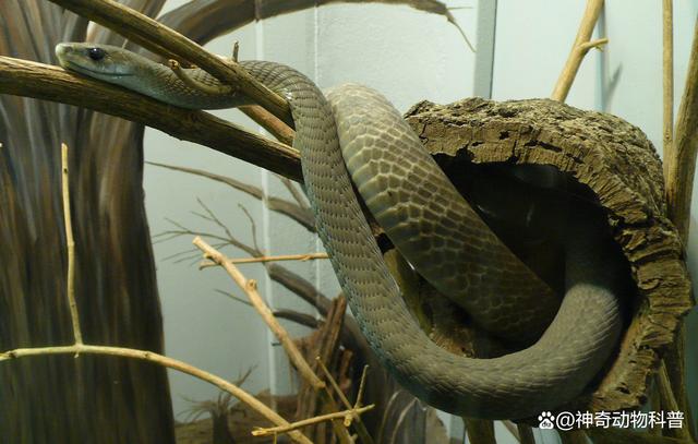 9、黑曼巴蛇 前沟牙毒蛇黑曼巴被认为是世界上最危险的蛇之一。它是一种栖息于较为干旱的开阔灌木丛和草原等地带的蛇类,攻击速度极快。黑曼巴蛇主要通过神经毒素攻击猎物的神经系统来麻痹猎物。其毒液为神经性毒,毒性非常强。据了解,平均只需要10-15毫克的黑曼巴蛇毒液就足以杀死一个成年人。而黑曼巴蛇的毒液量通常在100-120毫克,最多可达200毫克,这足以杀死13-20个人或一匹重600千克的长颈鹿。一旦被黑曼巴蛇咬伤,最快15-30分钟内,最慢也只有一小时的时间,就会导致死亡。