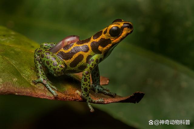 10、毒剑蛙 毒剑蛙是一种外表极为美丽的青蛙,也是世界上毒性最强的物种之一。它们身体娇小,平均只有1.5厘米,个别种类最长也可达6厘米。尽管如此,毒剑蛙却具有极强的毒性,据称每次释放毒液就足以杀死10人。其中最具代表性的一个种类是金毒镖蛙,它拥有亮黄色的皮肤,并带有一层致命的生物碱毒液覆盖。据了解,这种蛙类毒性极其强烈,甚至曾出现过因为接触过与其相近的物品(如纸巾)而导致其他动物死亡的情况。